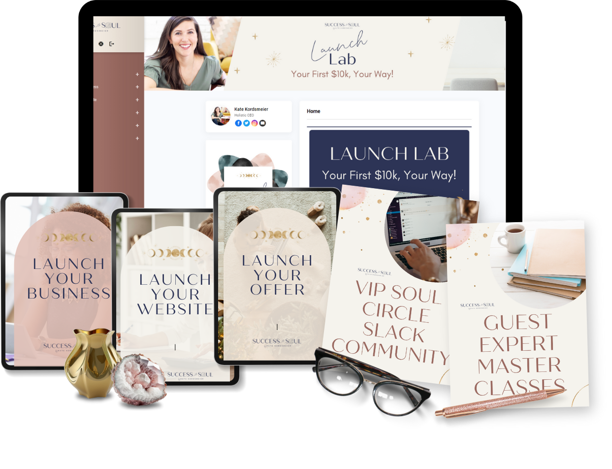 Equivalent to 12 months of support + access to jampacked modules helping you uncover your mission, vision + niche, launch your offer + website, with live monthly group coaching calls, access to our VIP Soul Circle Slack community, and more!